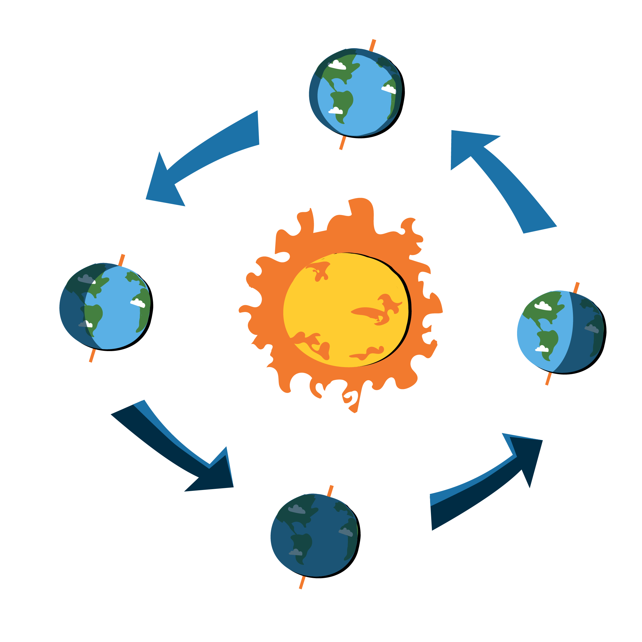 This just means that the angle of the Earth's tilt towards the sun is responsible for how we measure time and mark the changing seasons.